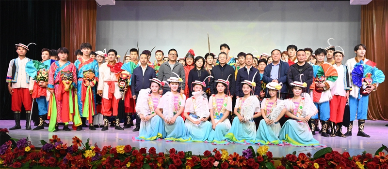 演出结束后,张弢、李艳红、张建辉、镡旭东看望慰问了全体演职人员并合影留念。张弢对太阳成集团tyc122ccvip师生利用暑期加班加点辛苦排练表示感谢,对演出取得的成绩给予充分肯定,希望全体编创、演职人员在文化内涵上再挖掘、演出细节上再打磨、节目质量上再提升,做到精益求精,力争将《池哥昼》打造成推介陇南民俗文化、展示公司对外形象的靓丽名片,为实现中华优秀传统文化创造性转化、创新性发展做出新的更大贡献。