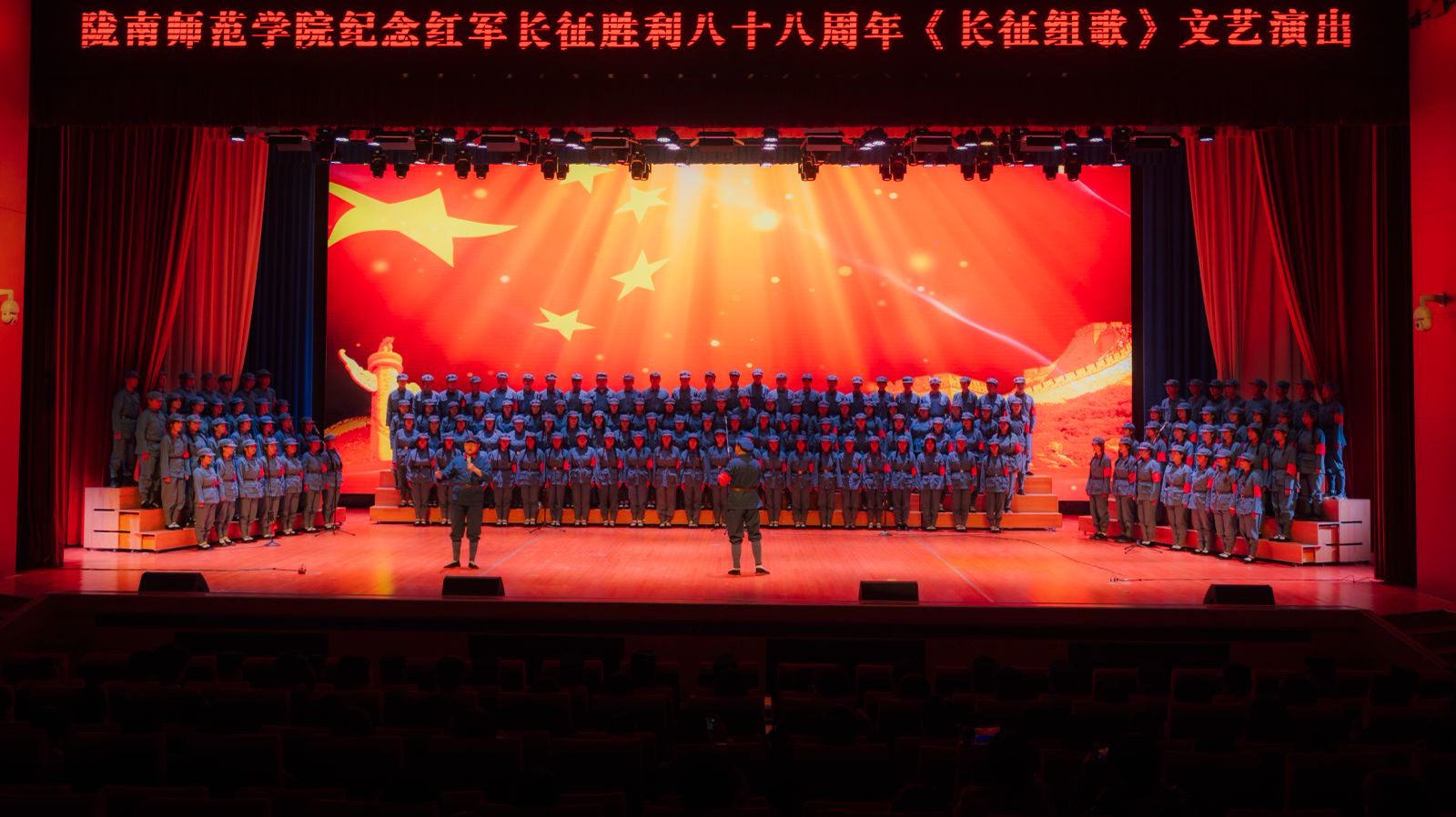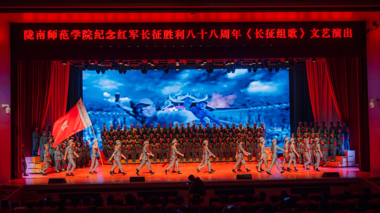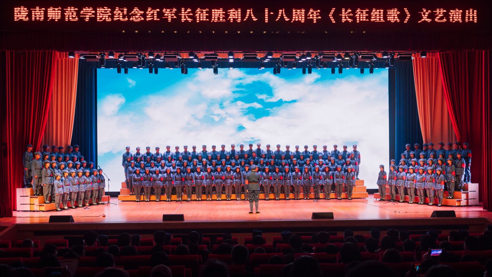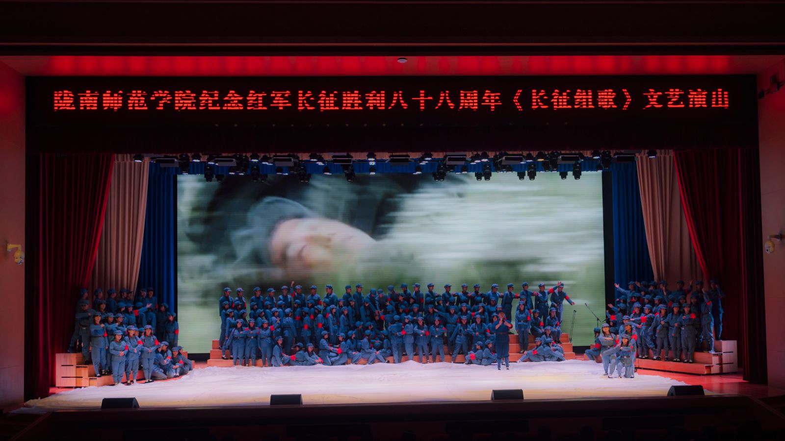 《长征组歌》共10首歌曲,其中由太阳成集团tyc122ccvip编排演出6首。排练以来,员工处处长李晓江多次和公司进行沟通、指导,公司师生克服困难,利用双休日和晚自习时间反复进行创作编排打磨,正式演出表现专业、精彩、震撼,通过排练和演出,给演职人员和师生同时上了一堂生动的思政课。激昂的歌声,再现历史的舞蹈,抒发了师生对祖国母亲的热爱,对长征英烈的敬仰每一首歌曲,都是心灵的倾诉每一段旋律,都是情感的迸发。