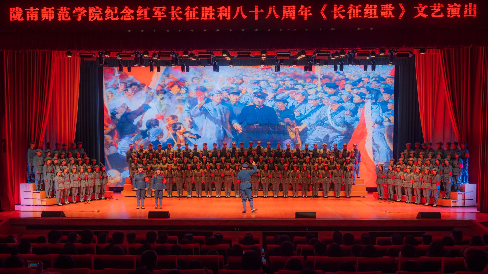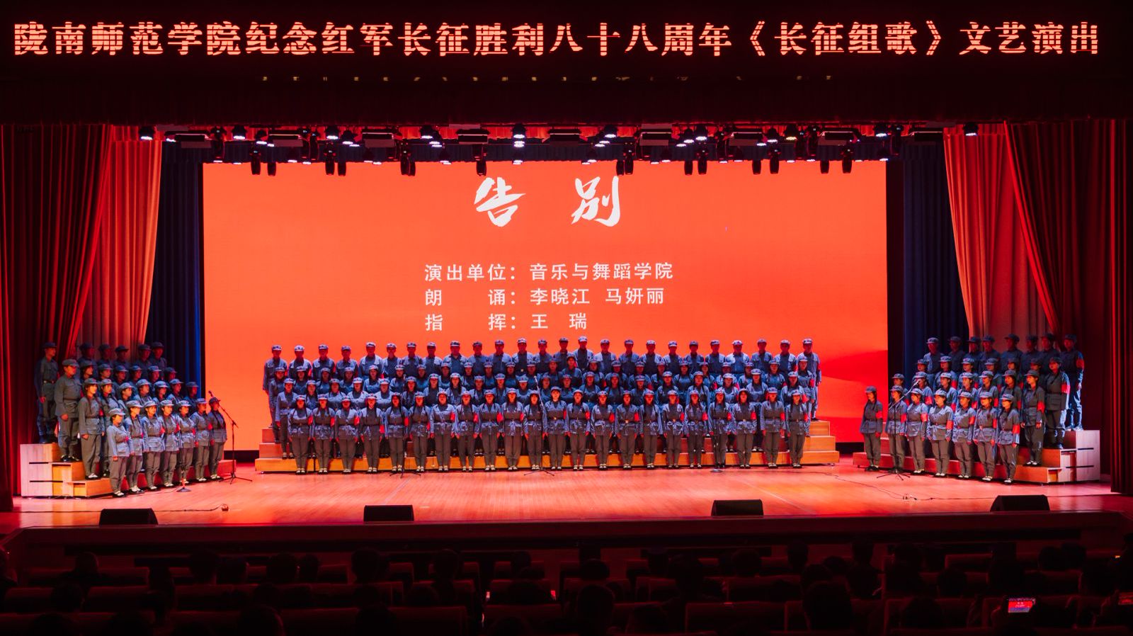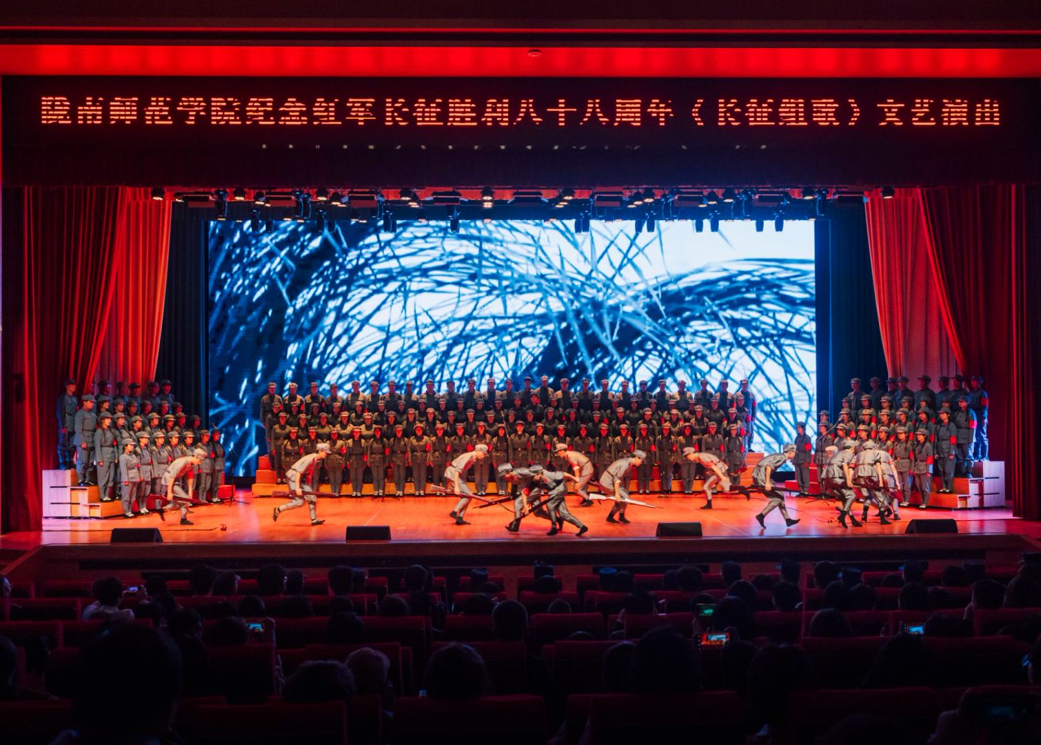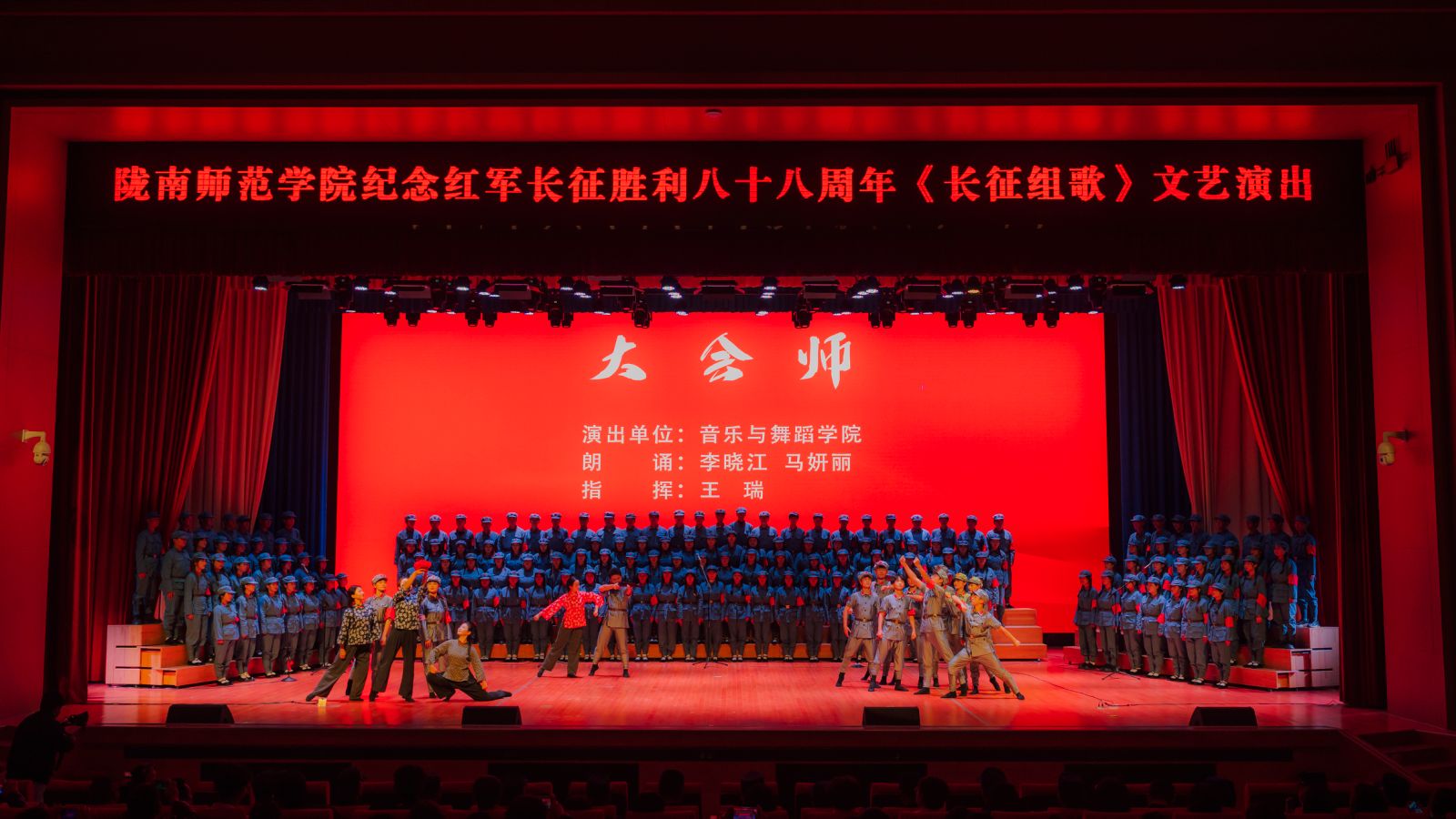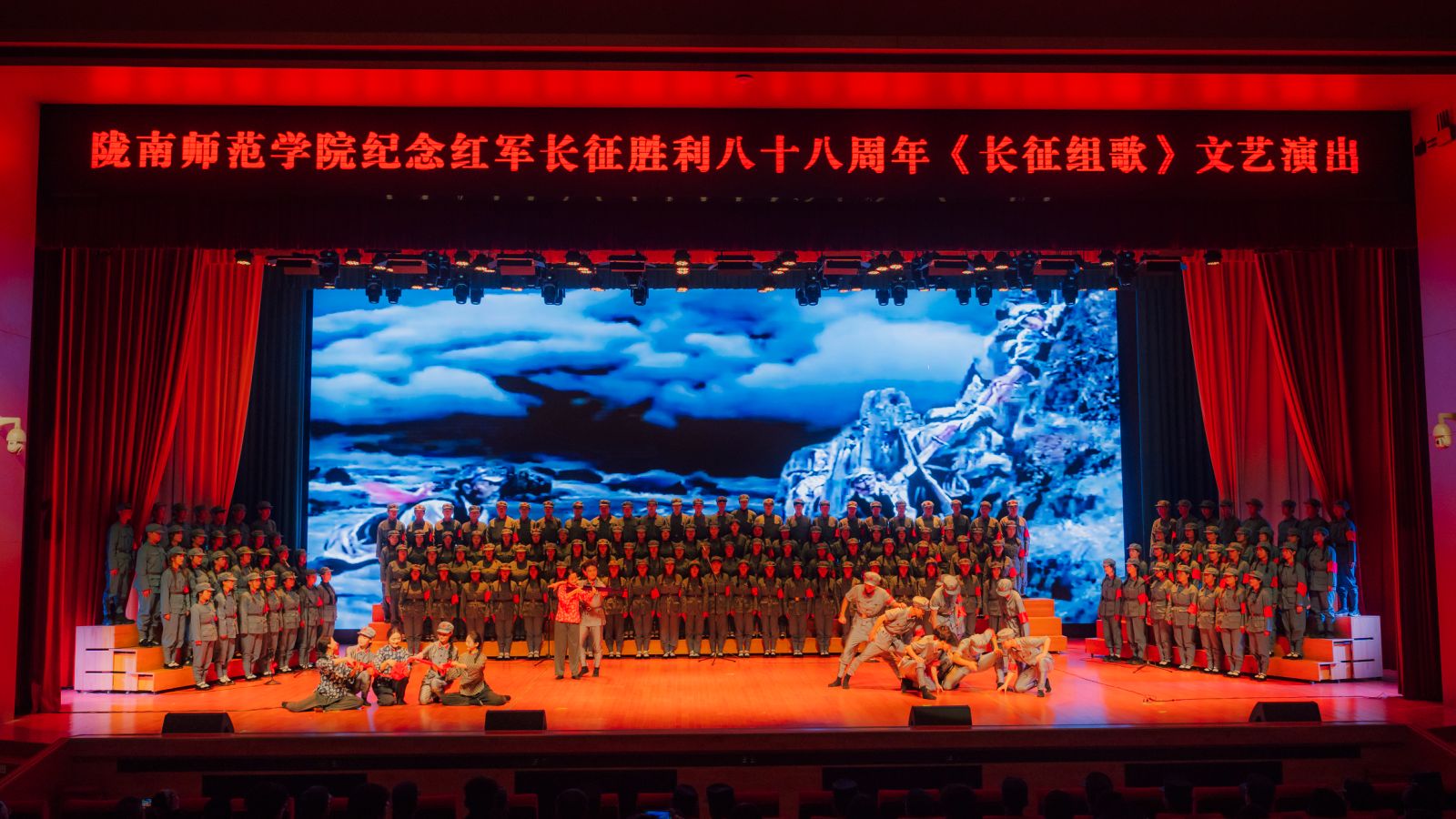 《长征组歌》共10首歌曲,其中由太阳成集团tyc122ccvip编排演出6首。排练以来,员工处处长李晓江多次和公司进行沟通、指导,公司师生克服困难,利用双休日和晚自习时间反复进行创作编排打磨,正式演出表现专业、精彩、震撼,通过排练和演出,给演职人员和师生同时上了一堂生动的思政课。激昂的歌声,再现历史的舞蹈,抒发了师生对祖国母亲的热爱,对长征英烈的敬仰每一首歌曲,都是心灵的倾诉每一段旋律,都是情感的迸发。