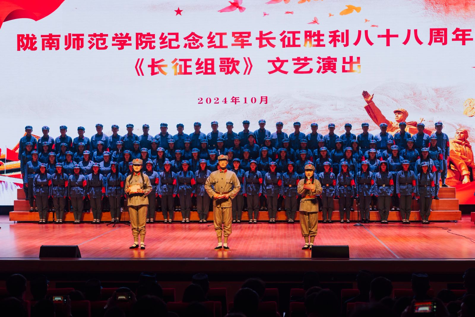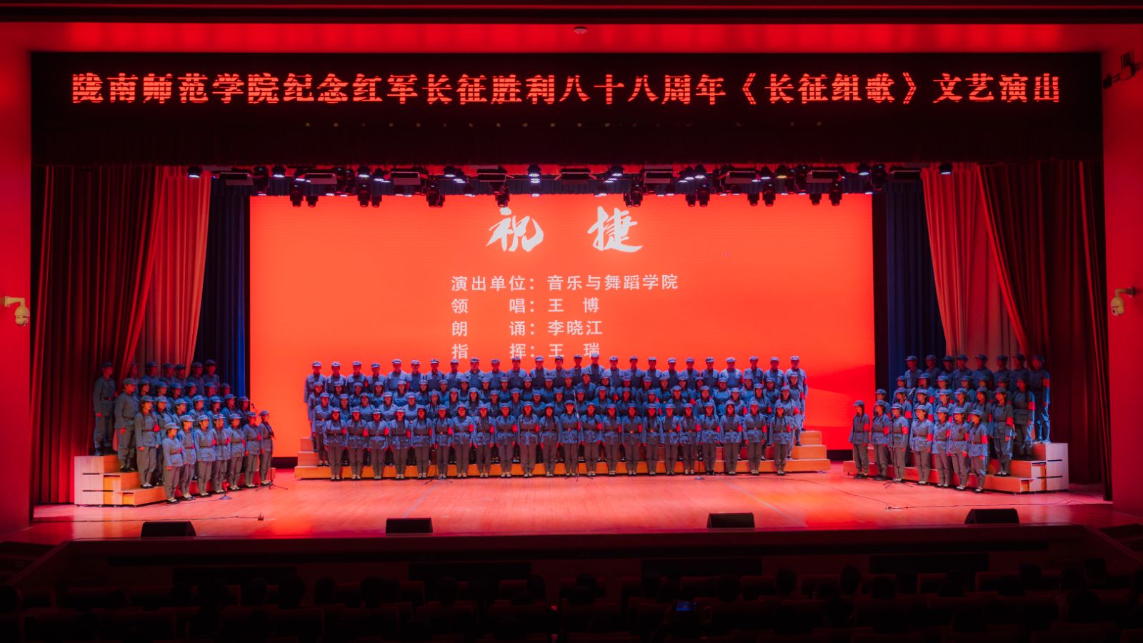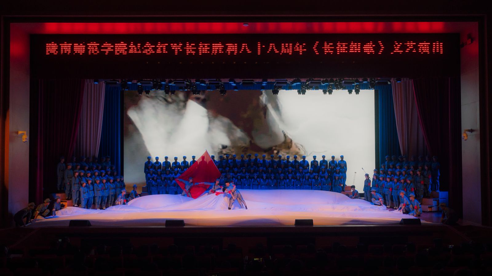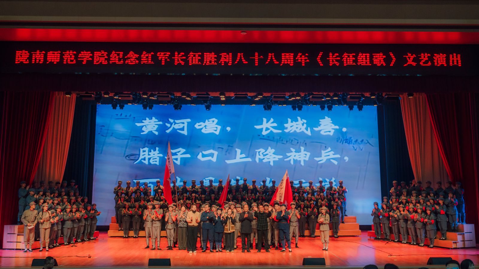 《长征组歌》共10首歌曲,其中由太阳成集团tyc122ccvip编排演出6首。排练以来,员工处处长李晓江多次和公司进行沟通、指导,公司师生克服困难,利用双休日和晚自习时间反复进行创作编排打磨,正式演出表现专业、精彩、震撼,通过排练和演出,给演职人员和师生同时上了一堂生动的思政课。激昂的歌声,再现历史的舞蹈,抒发了师生对祖国母亲的热爱,对长征英烈的敬仰每一首歌曲,都是心灵的倾诉每一段旋律,都是情感的迸发。