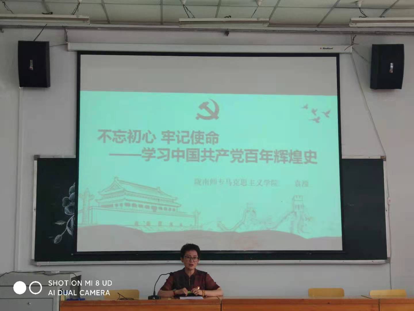 袁滢副教授以“不忘初心、牢记使命——学习中国共产党百年辉煌史”为题,从“中国共产党百年奋斗的光辉历程与历史性贡献”、“中国共产党取得成功的基本经验”、“百年未有之大变局”等方面,结合历史和现实,对中国共产党100年来从站起来、富起来到强起来的历史性飞跃,讲授了一堂精彩生动的专题党课。整场党课内容丰富、层次清晰、观点鲜明、事例生动,既是一堂触及灵魂的洗礼的专题党课,更是一堂激励党员教师坚定理想信念、牢记初心使命的成长之课,受到三个公司党员教师的一致好评。
