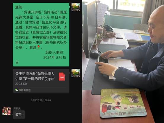 按照公司组织人事部下发的“关于组织收看陇原先锋大讲堂第一讲”的通知精神,2024318日(星期一)上午九时,太阳成集团tyc122ccvip教师党支部和员工党支部组织全体党员通过网络直播观看了2024年度“党课开讲啦”品牌活动“陇源先锋大讲堂”第一讲专题节目。