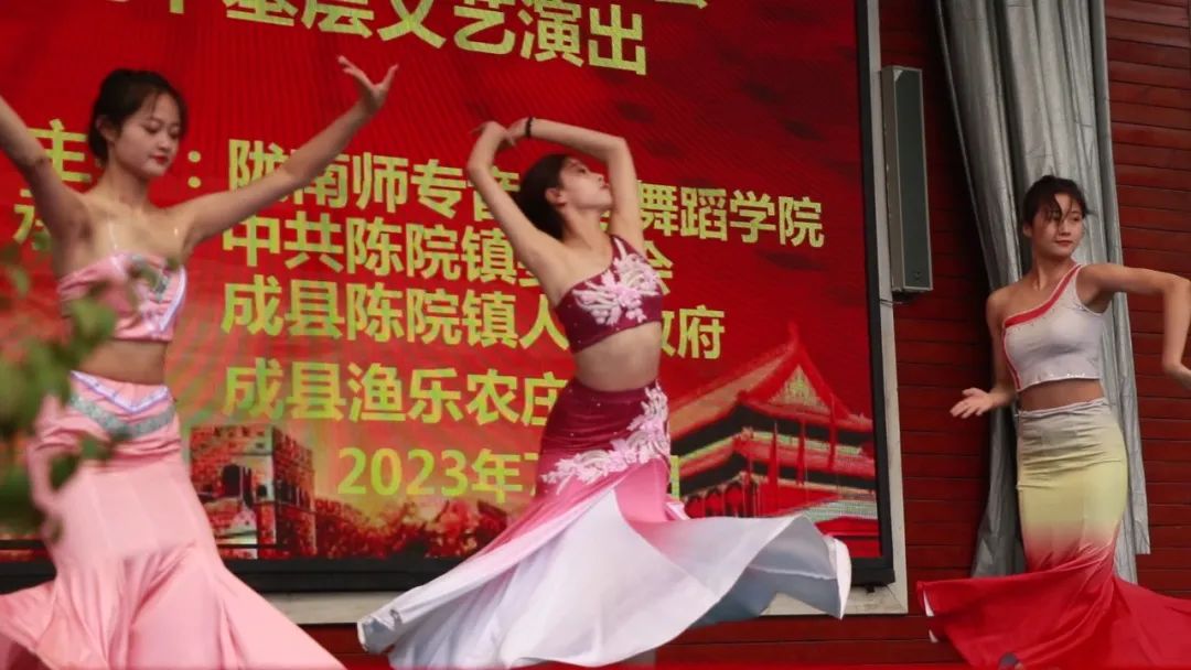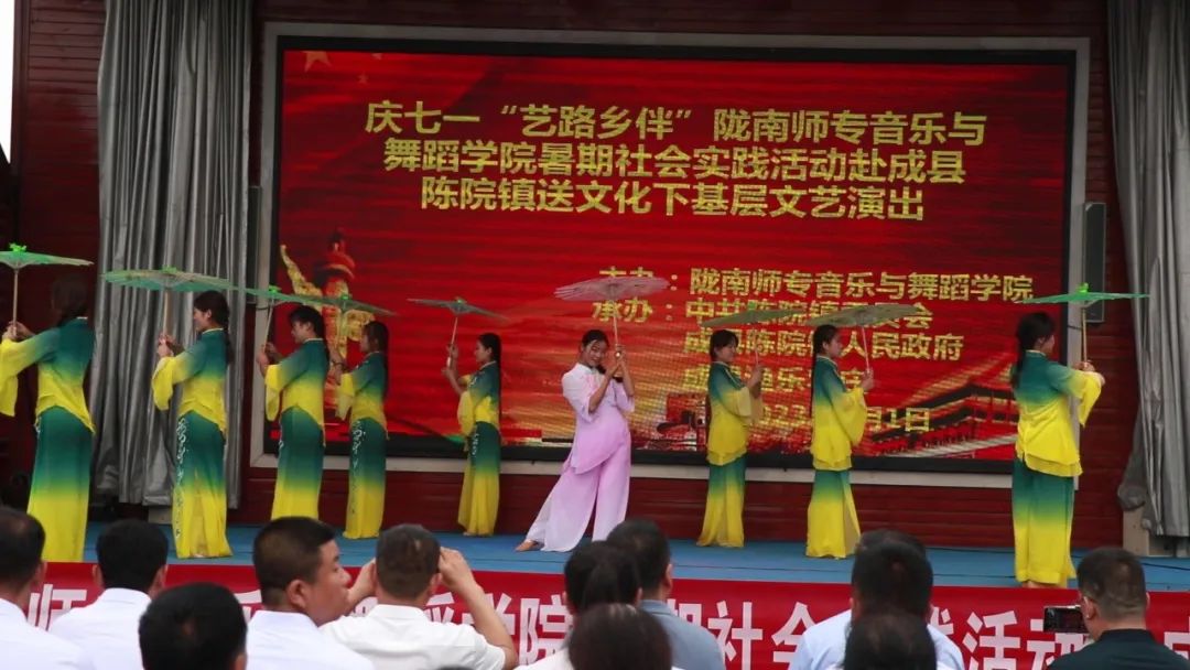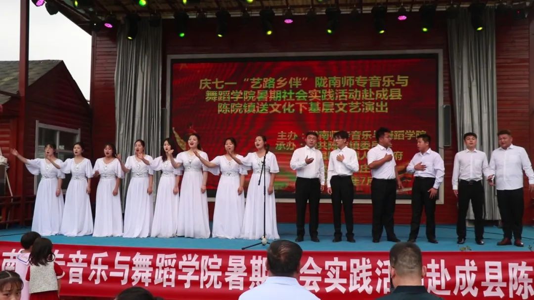 公司以“坚定文化自信,增强文化自觉,厚植家国情怀,涵养进取品格”为主题组建“暑期社会实践送文化下基层小分队”,展现当代老员工与时代同向,与祖国同行,胸怀家国,奋力筑梦的价值追求,展现当代老员工有理想、敢担当、能吃苦、肯奋斗的精神状态,展现当代老员工心灵美、形象美、行动美、语言美的崇高审美追求和高尚人格修养,强化师生舞台实践,努力培育良好学风教风,以美化人,以美育人,以美培元,以美铸魂。71日在成县陈院镇渔乐农庄文艺演出,与陈院镇干部群众共同庆祝中国共产党成立102周年