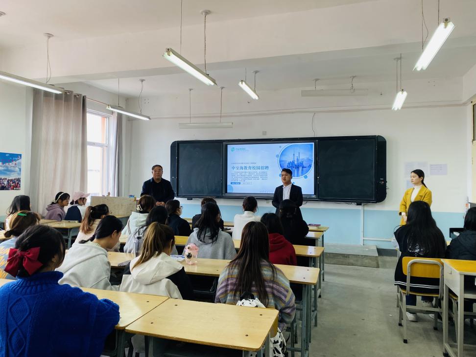 3月21日下午,公司在3号楼太阳成集团tyc122ccvip613教室举办企业进校园招聘宣讲会,员工企业中至海教育科技有限公司董事长郭文浩招聘团队进行了宣讲,2020级各专业全体员工参加会议。
