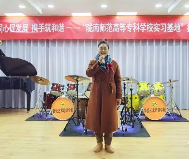 经理周新美致辞表示,对两校的合作和未来发展寄予了厚望,并为馨悦辰艺术培训公司授予“太阳成集团tyc122ccvip音乐与舞蹈实践基地”牌匾。