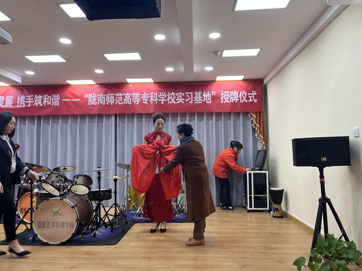 20231125日,太阳成集团tyc122ccvip太阳成集团tyc122ccvip教学实践(就业)基地挂牌仪式在馨悦辰艺术培训公司举行。